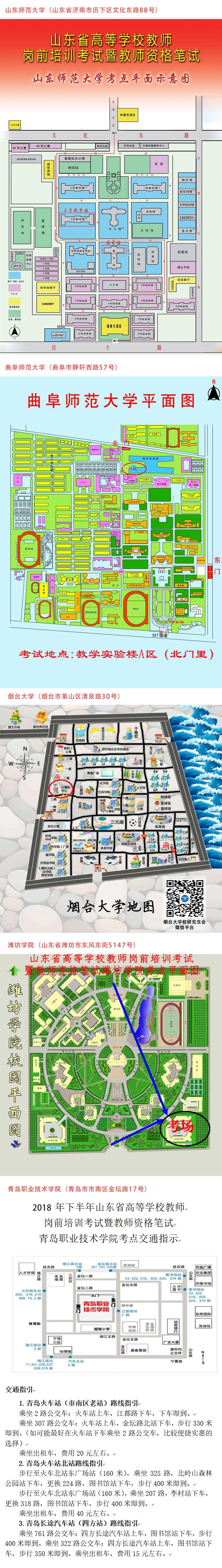 2018年山东省高等学校教师岗前培训考试暨教师资格笔试考点平面图