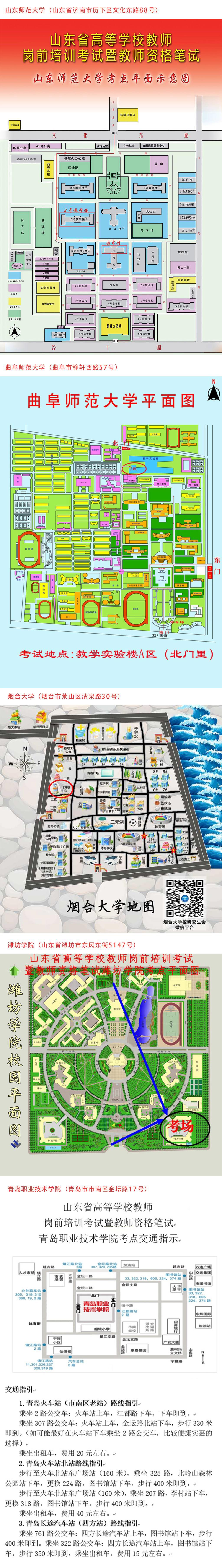 2023年下半年山东省高等学校教师岗前培训考试暨教师资格笔试考点平面图