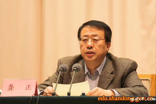龚正在讲话中指出,面对新时代现代化强省建设的新形势新任务,必须紧紧围绕建设现代化教育强省,强化优先发展的定力、刀刃向内的勇气,锚定提升质量、促进公平、服务发展、激发活力、优先保障,持续深化改革创新,补齐教育工作短板,推动教育实现由大到强战略性转变。一要加快从规模增长转向质量提升,推动教育实现高质量内涵式发展。要牢固树立质量为先的导向,转教育理念、转育人模式、转评价方式,把素质教育应有地位真正立起来,把全员育人、全过程育人、全方位育人的人才培养模式真正立起来,把科学的教育评价指挥棒真正立起来。二要加快从基本均衡转向高位均衡,推动教育实现更公平更优质发展。要聚焦群众关切、社会关注的现实问题,创新破解“入园难”“入园贵”,发展更普惠的学前教育;创新破解“乡村弱”“城镇挤”,促进更优质的义务教育;创新破解“关爱少”“服务弱”,保障更平等的受教育权利。三要加快从产教结合转向深度融合,推动教育实现嵌入式特色化发展。要深化校地供需融合、要素融合、产教融合、价值融合,多育高端人才、齐鲁工匠,多出创新成果、多建良言实策,让山东高校在强省建设中挑大梁、担重任。四要加快从要素拉动转向制度驱动,推动教育实现创新性开放式发展。要健全现代学校治理体系、开放办学体系、评价激励体系,增加有效制度供给,让一切要素活力竞相迸发。五要加快从基础保障转向优先保障,推动教育实现全方位可持续发展。要优化教育发展“硬环境”“软环境”“大环境”,切实做到发展规划优先考虑、资金投入优先保障、资源配置优先满足,加快推进现代化教育强省建设。