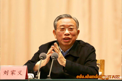 刘家义指出,建设现代化教育强省,一要牢记根本任务,始终坚持正确办学方向和育人导向。把理想信念教育贯穿教育工作始终,培养中国特色社会主义现代化建设的有用人才,不断满足人民群众的教育需求。二要加快推进教育高质量发展,全面提升我省教育综合实力。在基础教育方面,要把立德树人成效作为检验学校一切工作的根本标准,加快解决“乡村弱、城镇挤”的问题,积极推动教育普及普惠发展,促进普通高中特色多样发展。在高等教育方面,要加快推进一流大学和一流学科建设,加快调整优化高校布局和学科专业结构,加快推进科技创新。在现代职业教育方面,要加快建立与普通教育并行并重的现代职业教育体系,加强对职业教育发展的引导和支持,提高技术技能人才的社会地位和待遇。三要更加重视师资建设,着力打造高素质专业化教师队伍。广大教师要坚定政治立场,忠于教育事业,学高为师、身正为范,引导学生扣好人生第一粒扣子。要发扬尊师重教优良传统,积极改善教师工作和生活条件,让教师成为最受人尊敬、最值得羡慕的职业。四要大力推进教育改革创新,充分激发教育事业发展活力。要深化人才培养模式改革,深化教育放管服改革,着力解决教育评价指挥棒问题,扩大教育开放,着力形成充满活力、富有效率、更加开放、有利于高质量发展的教育体制机制。五要加强党对教育工作的全面领导,汇聚教育事业发展强大合力。要切实承担起各级党委的主体责任,抓好学校党建工作,创造安全稳定的校园环境,营造教育改革发展良好氛围,统筹各方资源力量推动教育发展,办好人民满意的教育。