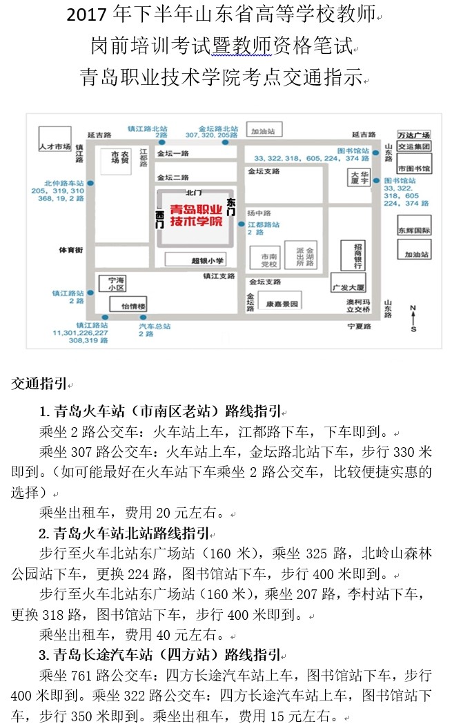 2017年下半年山东省高等学校教师岗前培训考试暨教师资格第二次笔试各考点示意图